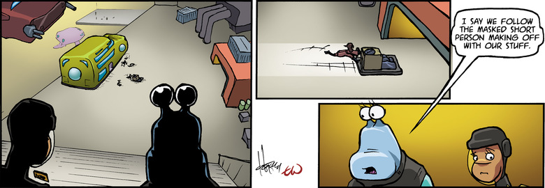 LEGS: I say we follow the masked short person making off with our stuff.