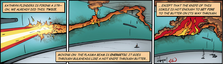 Moving on: the plasma beam is energetic. It goes through bulkheads like a hot knife through butter...