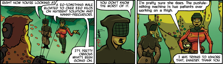 ENNESBY: I'm pretty sure she does. The pustule-milking machine is two patients over working on a thigh.