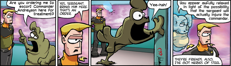 SCHLOCK: Are you ordering me to escort Commander Andreyasn here for treatment?
