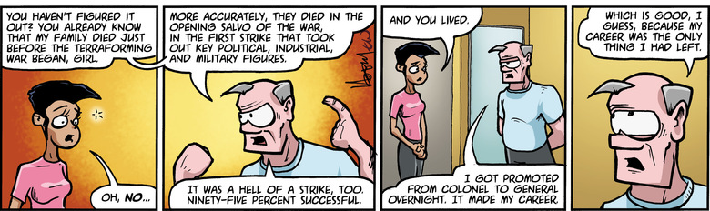GEN. TAGON: You haven't figured it out? You already know that my family died just before the Terraforming War began, girl.