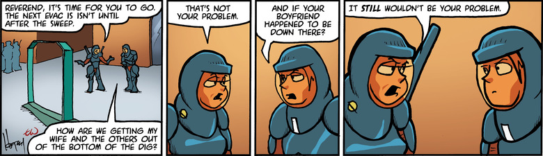 ELF: Reverend, it's time for you to go.  The next evac isn't until after the sweep.
