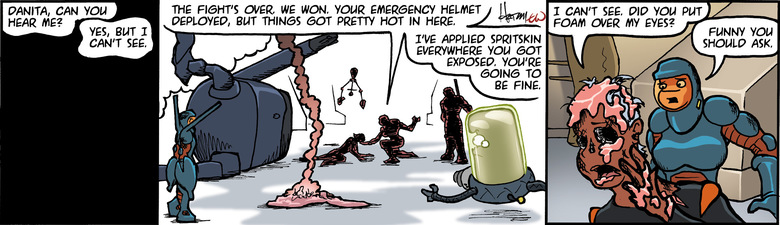 BUNNI: The fight's over. We won. Your emergency helmet deployed, but things got pretty hot in here.
