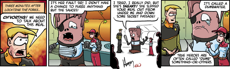 GEN. TAGON: Not all good news is enemy action. Where did you people put my forks?