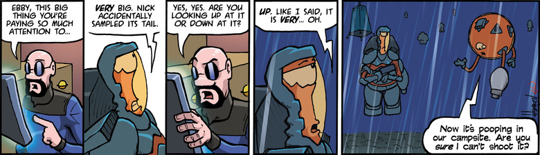 SCHLOCK: Now it's pooping in our campsite. Are you sure I can't shoot it?