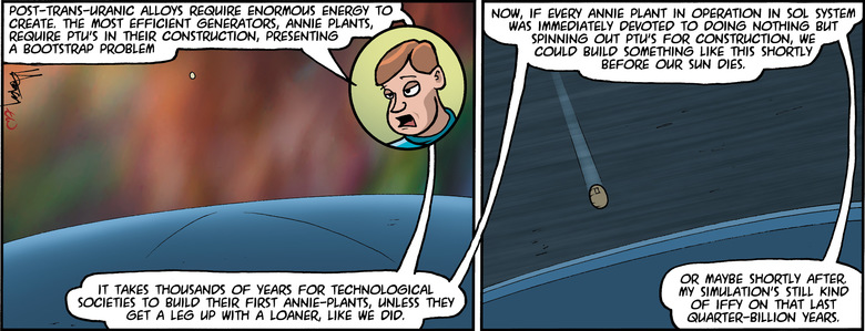 Now, if every annie plant in Sol system was immediately devoted to doing nothing but spinning out PTU's for construction, we could build something like this shortly before our sun dies.