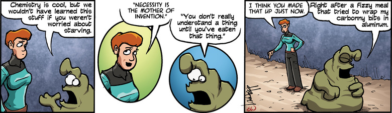 SCHLOCK: That's the fizzy taste. They're trying to electroplate me from the inside!