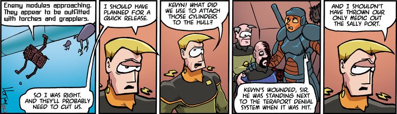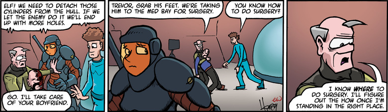 ELF: Kevyn's wounded, sir. He was standing next to the teraport denial system when it was hit.