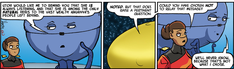 MAIA: Utchi would like me to remind you that she is always listening, and that she is among the only natural heirs to the vast wealth Anuaiyya's people left behind.