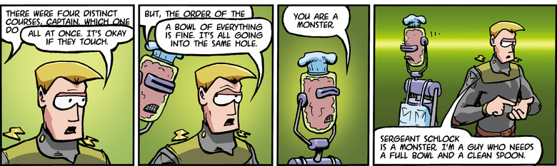 TAGON: Sergeant Schlock is a monster. I'm a guy who needs a full bowl and a clean spoon.
