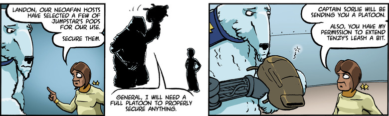 LANDON: Tenzy is uncomforable with the word "leash," General. It makes her feel like a pet.