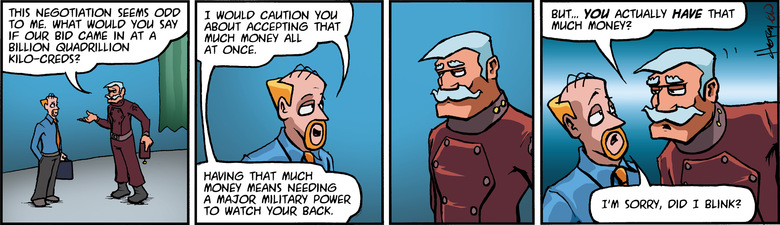 MENENDEZ: This negotiation seems odd to me. What would you say if our bid came in at a billion quadrillion kilo-creds?