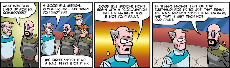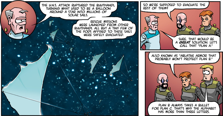 CDRE TAGON: The U.N.S. attack ruptured the buuthandi, turning what used to be a balloon around a star into millions of solar sails.