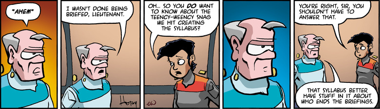 CDRE TAGON: That syllabus better have stuff in it about who ends the briefings.