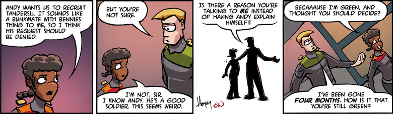 CHELLE: Andy wants us to recruit Tandersil. It sounds like a bunkmate with bennies thing to me, so I think his request should be denied.
