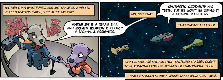 What should be said is this: Shiplord Srabben ought to be running from fights rather than picking them.