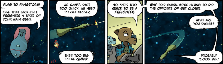 Fangstorm captain: We can't. She's too quick. We need to get closer.