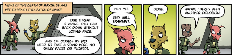 NARRATOR: News of the death of Maxim 39 has yet to reach this patch of space.