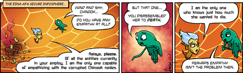 CHINOOK: First, thousands of my warships remain in the control of corrupt nodes. Second, you're unwilling to take the steps necessary to solve the problem.