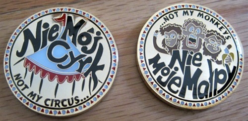 We're running a brief sale on the very popular "Not my circus, not my monkeys" coins, which we usually just call "monkey coins."